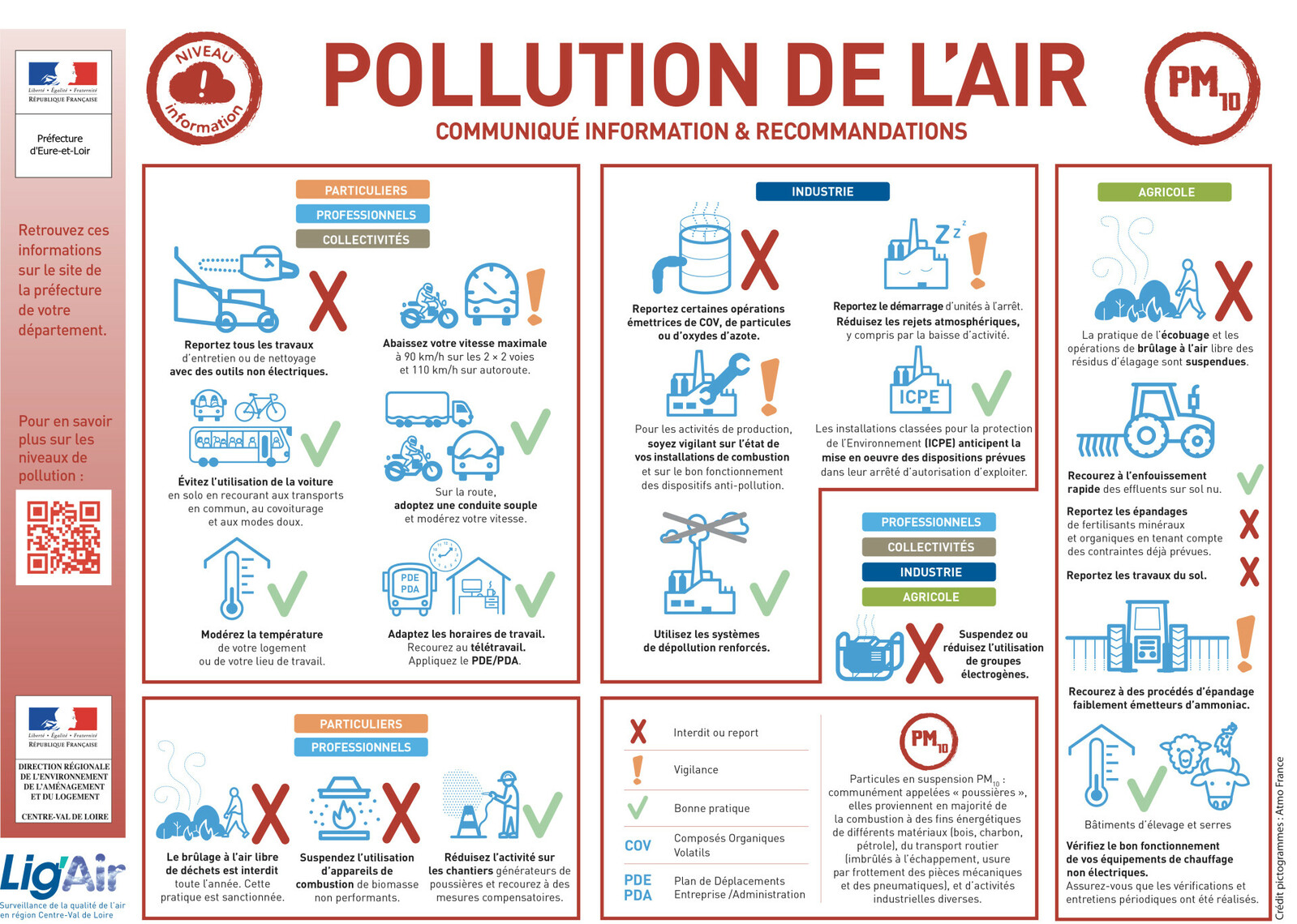 Un épisode de pollution atmosphérique aux particules en suspension PM10 est attendu pour la journée de samedi 7 mars 2026 sur le département d'Eure-et-Loir, appelant le déclenchement de la procédure "information et recommandation".